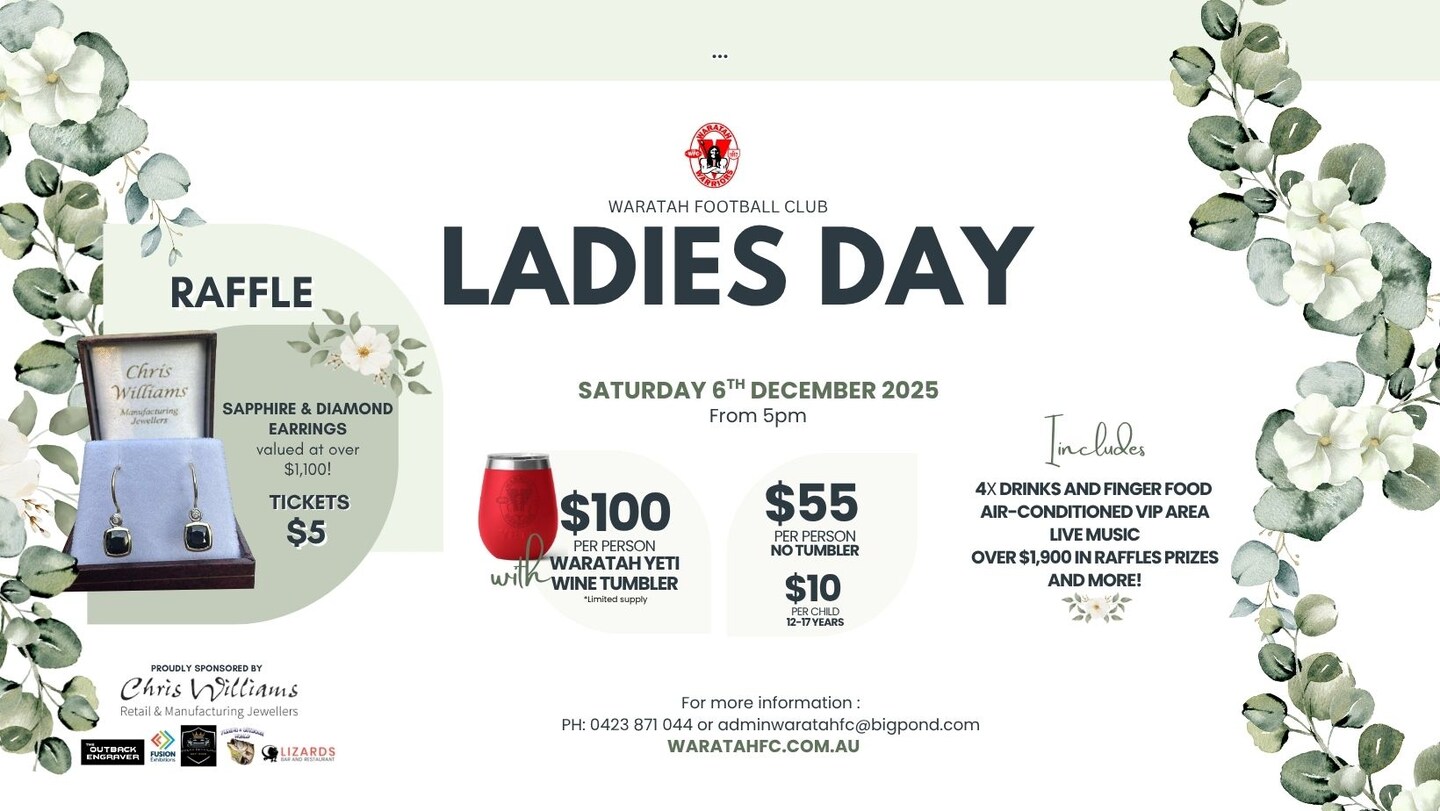 | Ladies Day Adult Ticket WITHOUT Waratah Yeti Tumbler | $55.00 | |